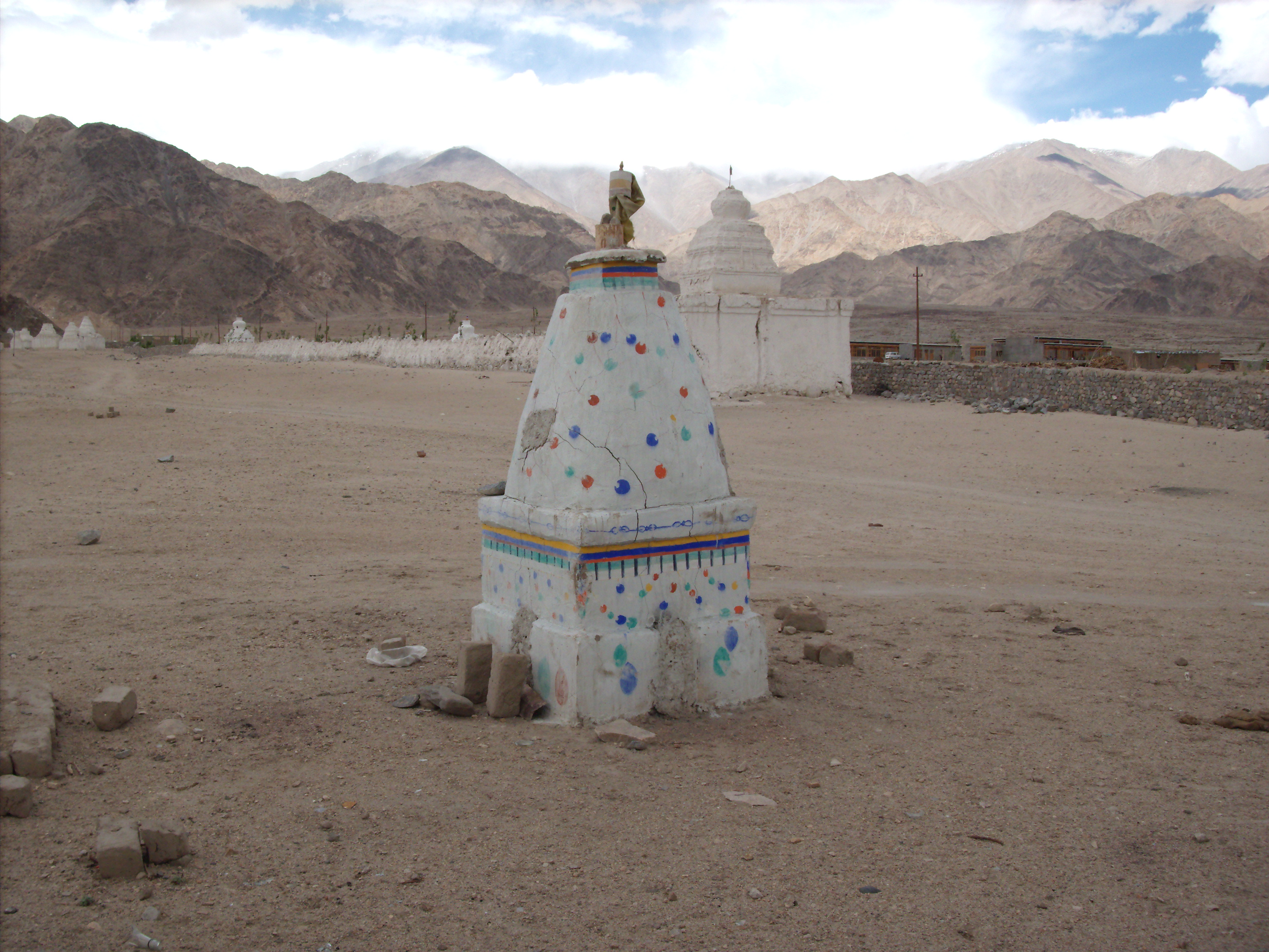 In the title I mention “a bit delayed.” Perhaps it has taken this long for me to have quality down time and who knows, maybe I am complete in my processing of the Pilgrimage – but I doubt it (two years later). In the post where I left off, we had just visited Stakna and Tikse Gompas (monasteries). And then, that long busy day continued and in this post I will mention the Stupa Burial Field and the Shey Palace.