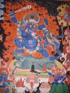 6/24/08 – another full day. We visited Sartok (sp?) monastery, crossing the river to do so. There are many statues and paintings, plus some black backgrounds with gold painted on it – making for a difficult-to-discern-yet-eerily-beautiful murals. As we were leaving, we passed a monk carrying a boy on his shoulders. The boy had on gold and saffron colored clothes, and some people were wondering if the child were special in some way – normally monks aren’t walking around with small children like that.