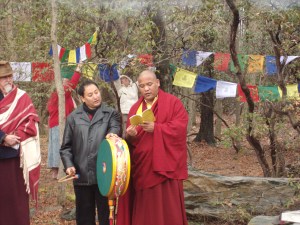 At least 50 to 60 ppl showed up for the Milarepa Tsok and then more people arrived (including many Tibetans from D.C. and Virginia) so we had at least 80 people for the smoke offering and pot luck lunch. It was great to see old friends and new comers – there were about 10 students from a college near Cumberland Maryland – they were attending to complete a requirement for a course. They were curious though and seemed happy to pry us with questions.