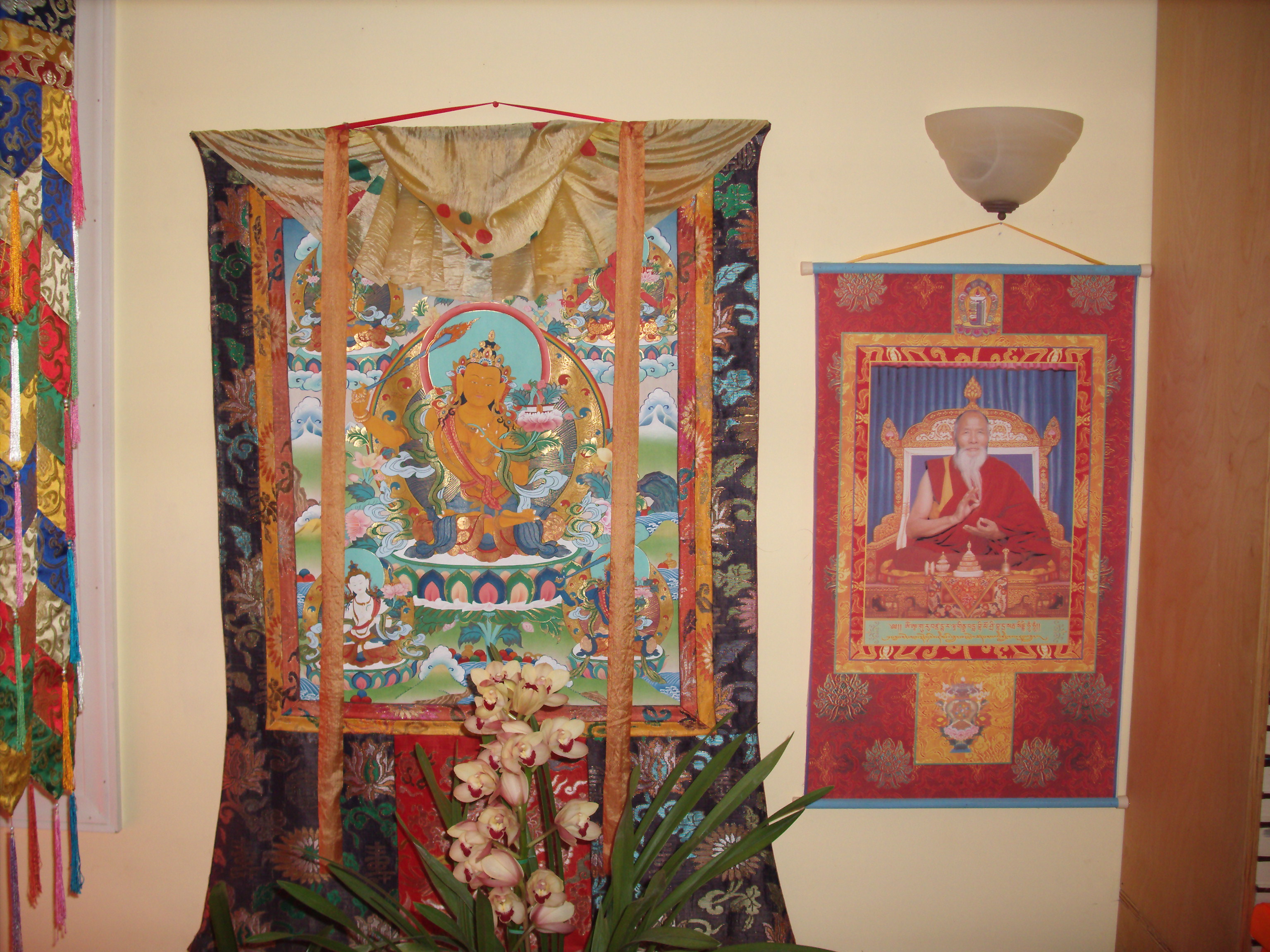The format for this retreat was to teach on the meaning of the six syllable mantra on Friday night. The mantra is Om Mani Pemme Hum (in Tibetan) it is slightly different in Sanskrit – Om Mani Padme Hung. Each syllable has to do with Chenrezig’s cleansing one of the realms of samsara – the hell realms, the hungry ghost realms, the animal realms, etc. He cleanses the afflictive emotions of each realm (supposedly). And each time we chant the mantra with devotion, another Chenrezig is created, going out into the world to offer healing and compassion to all beings.