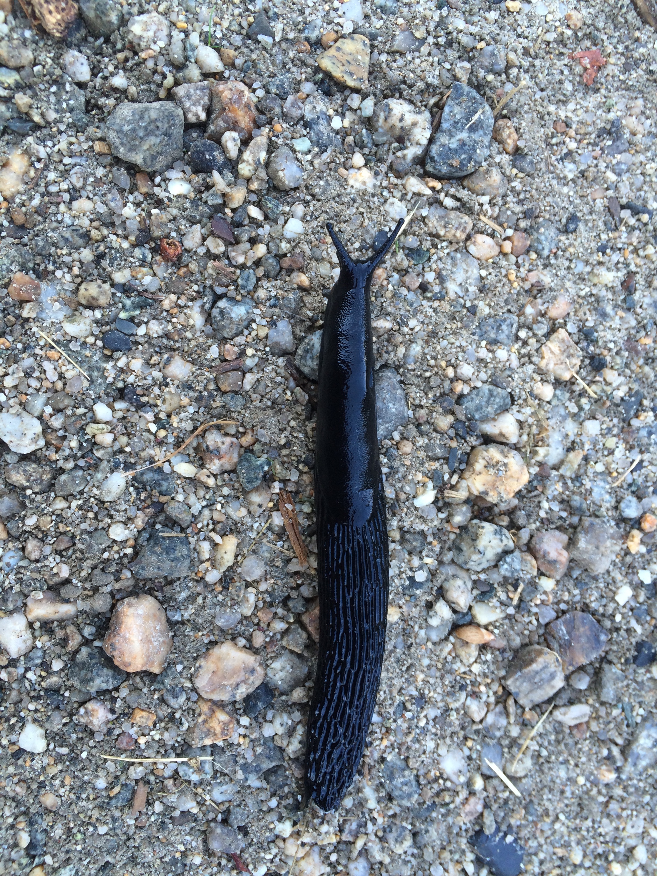 Dark large slugs common in rain or dew