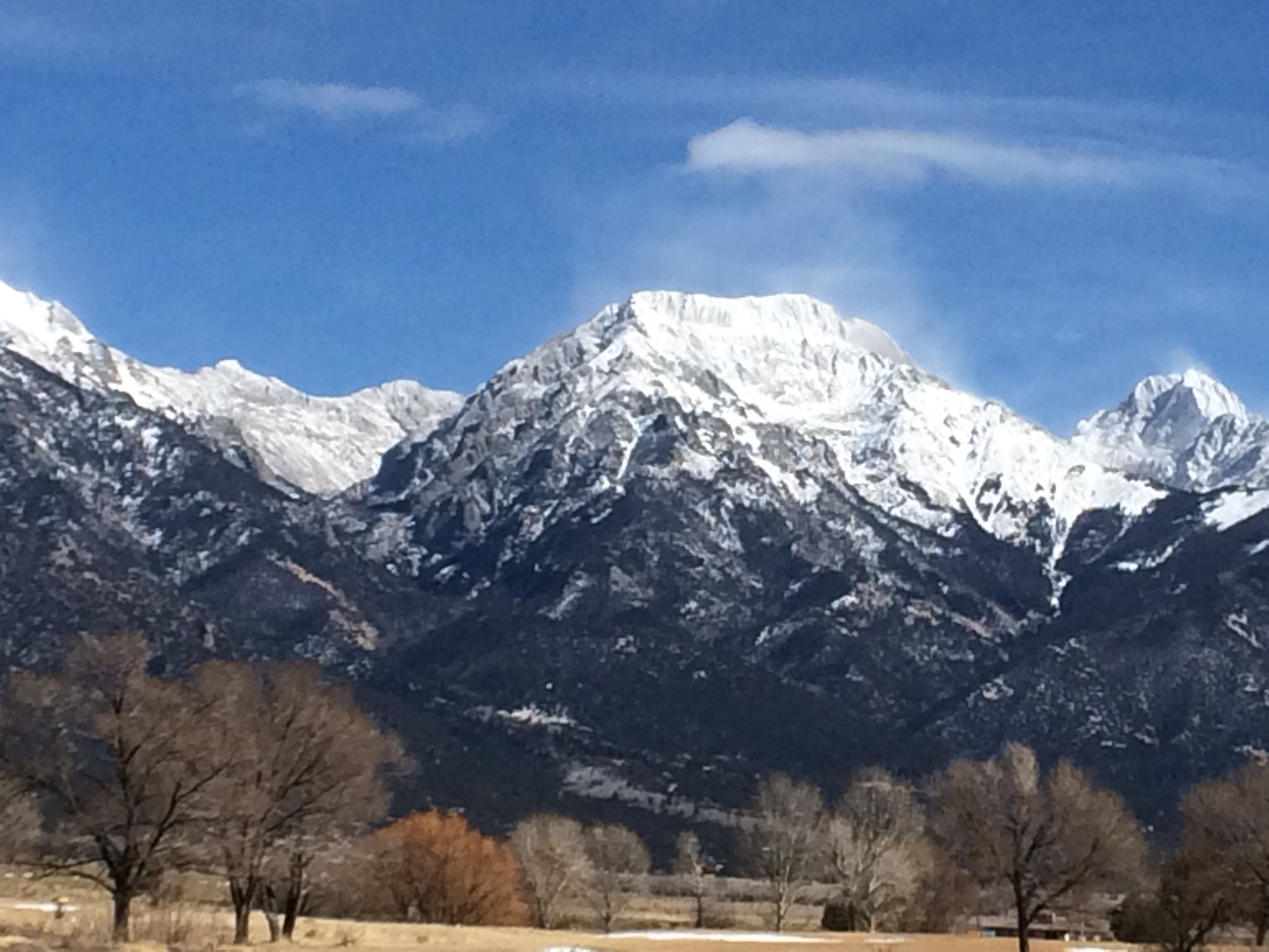 I love the snow being blown up into the sky by the strong winds! (Some of Crestone’s 13K+ peaks) Less snow now in March. They had a very odd winter – very little snowfall.