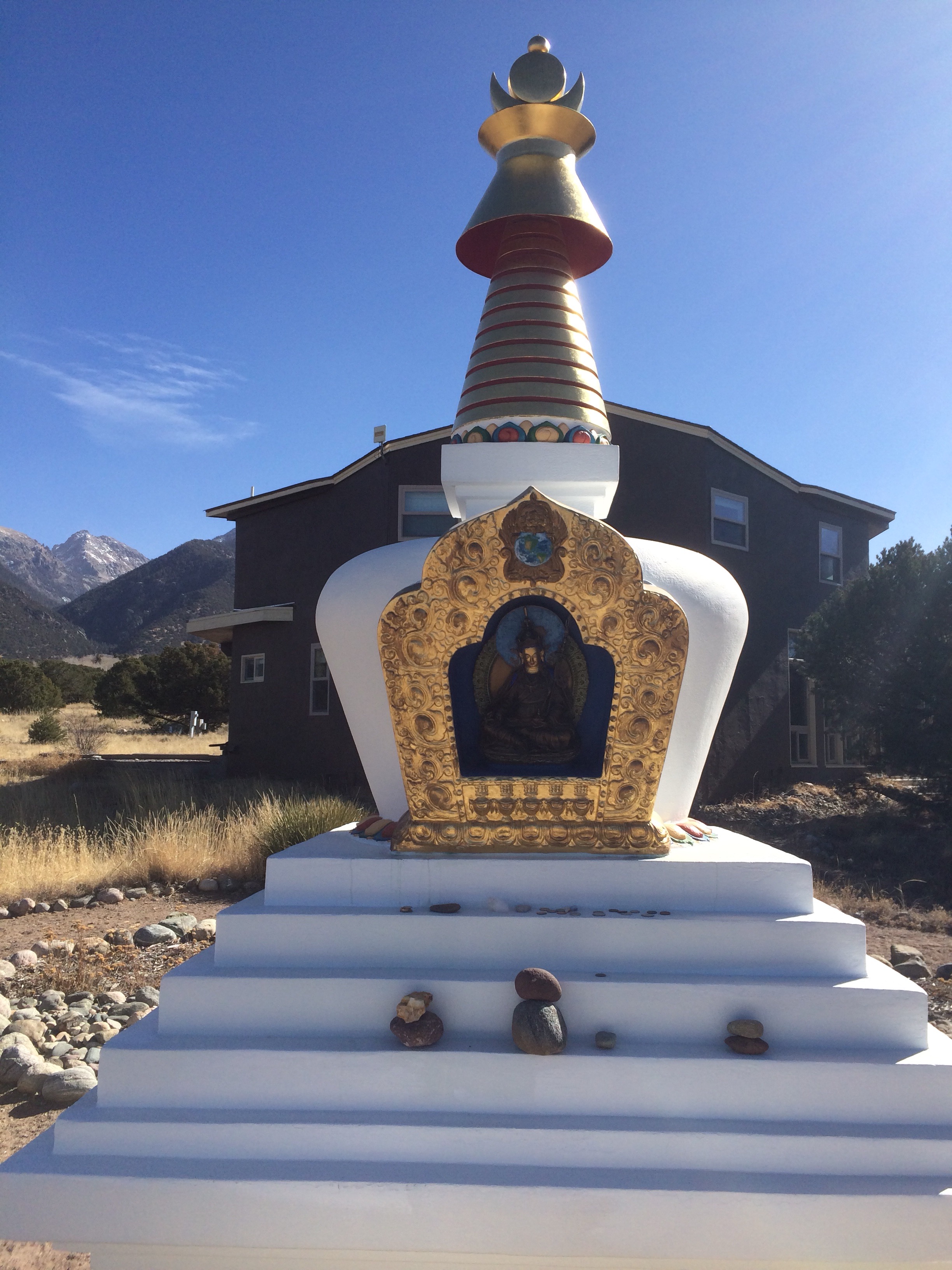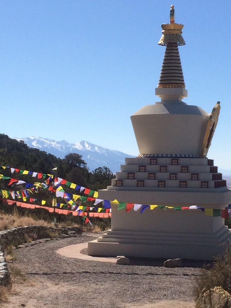 There is a large stupa just south of Crestone. Just follow Baca Grande road to its end, then be on the lookout for what looks like a driveway – that is Dream Road which will take you several miles later to this large beautiful stupa which is dedicated to the 16th Karmapa.