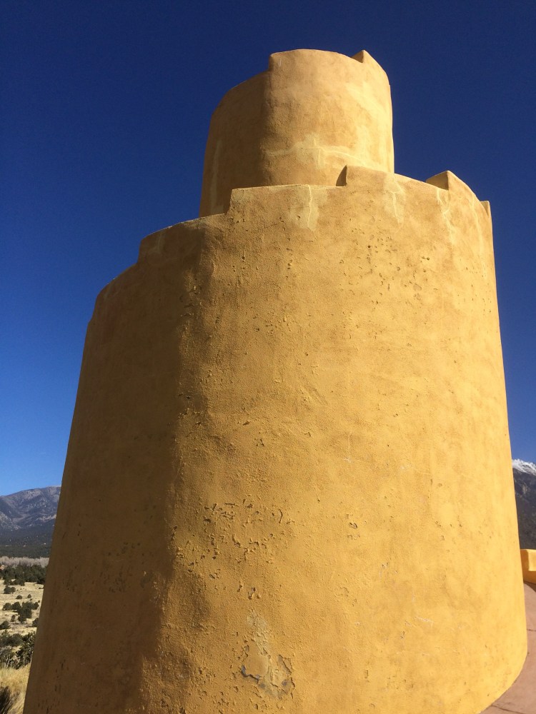 Also on their land, is a Zoroastrian structure, the Crestone Ziggurat (below). It was fun to visit. The winds were whipping and gusting like crazy though, so I had to crawl up to the top. The view was pretty grand though – 360 degrees around the San Luis valley. Including a view of the Sand Dunes Nat’l Park to the south. The dunes were in a frenzy of sand storm madness as the winds reshaped the parks features.
